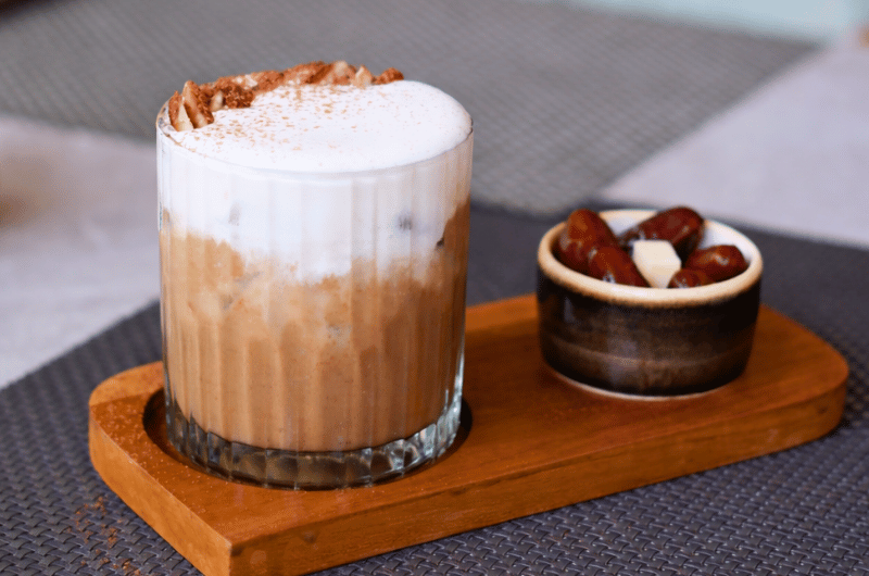 Dates and hazelnut meet smooth espresso, with soft milk foam, Rp 38.000 Net