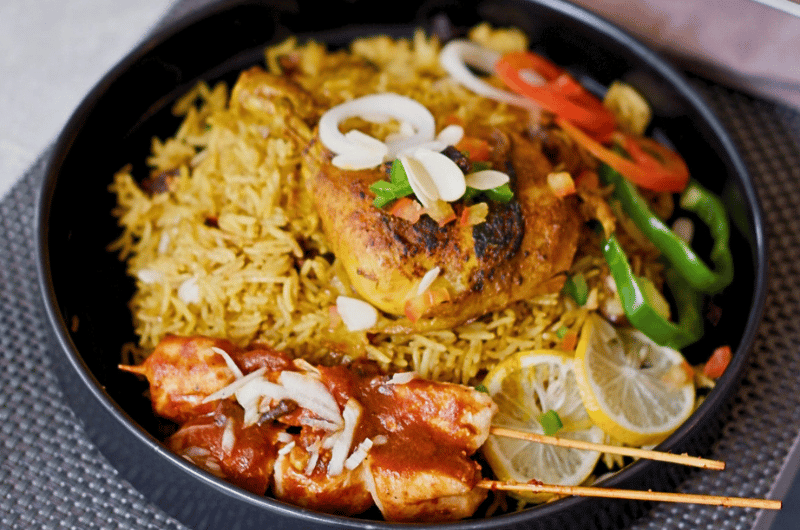 Aromatic Nasi Mandhi with tender grilled chicken and satay, only Rp 88.000 Net